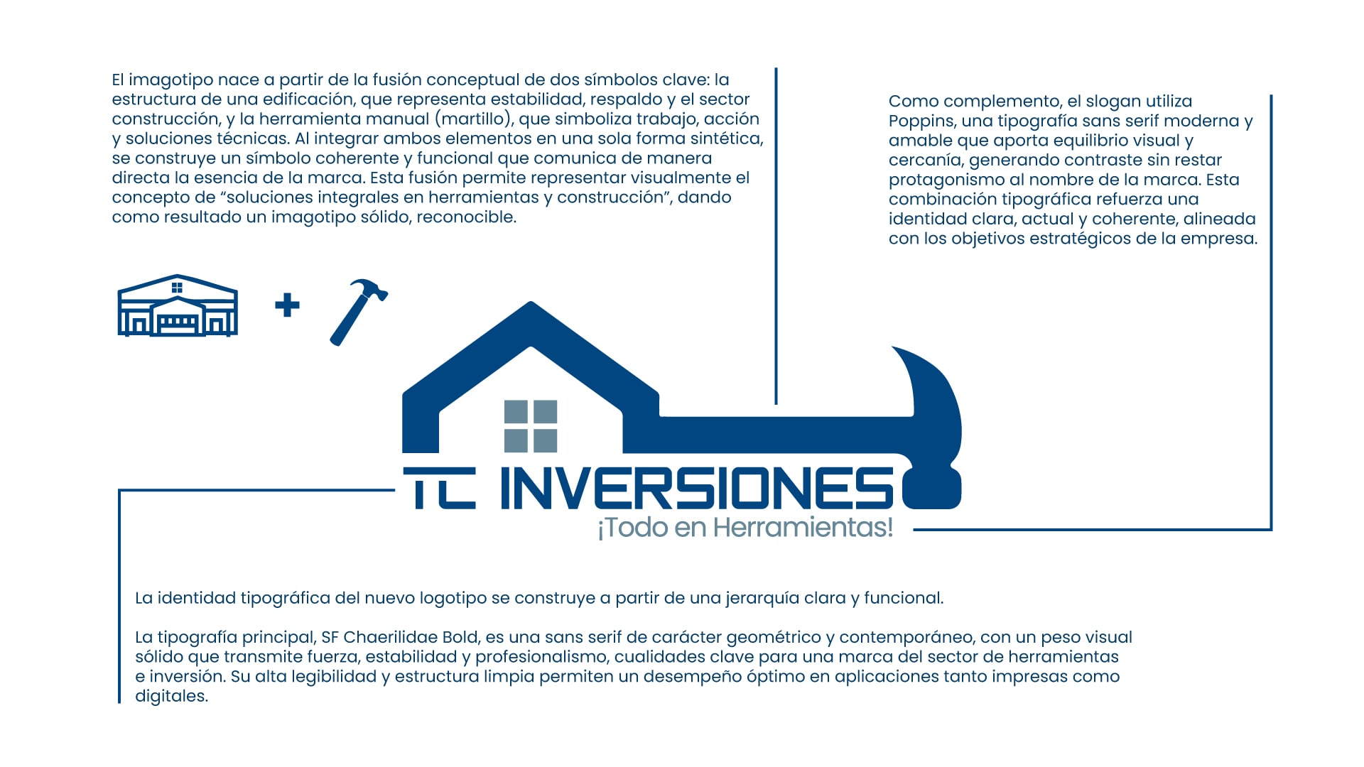 TC Inversiones opera en un sector —herramientas, construcción y soluciones técnicas— donde la confianza no es un atributo, es el pilar fundamental de la relación con el cliente. En este entorno, un logotipo trasciende su función de mero identificador visual; se convierte en el activo estratégico de marca que sintetiza la promesa de solidez, calidad y profesionalismo.